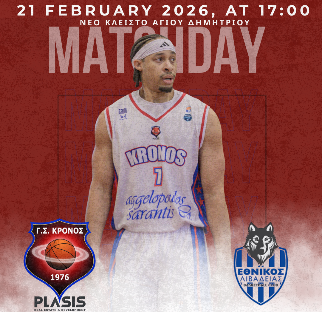 Nέο Κλειστό Αγ. Δημητρίου: Kronos BC PLASIS – Εθνικός Λιβαδειάς, Σάββατο 21/2 στις 17:00