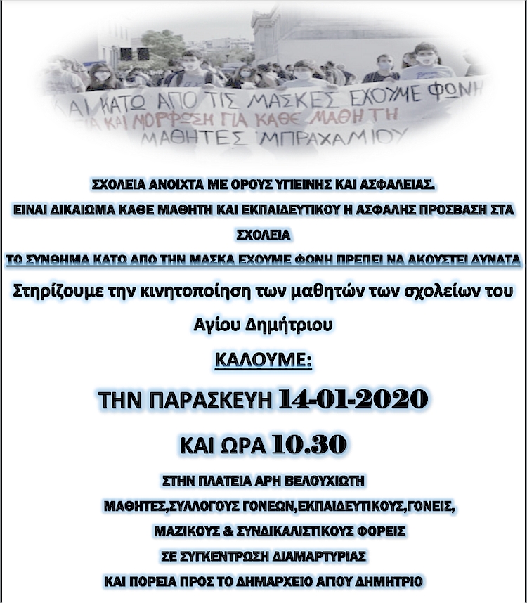 Το Δ.Σ της Ένωσης Συλλόγων Γονέων και Κηδεμόνων Αγίου Δημήτριου στηρίζει τα δίκαια αιτήματα των μαθητών τα οποία είναι και αιτήματα όλης της σχολικής κοινότητας.