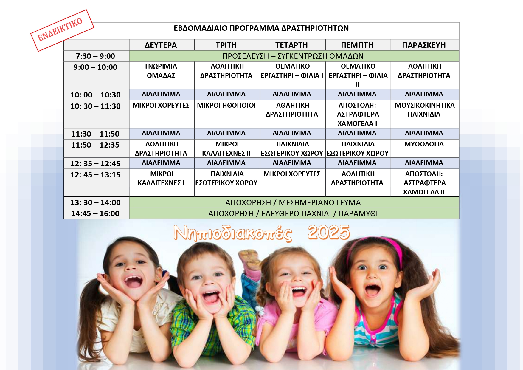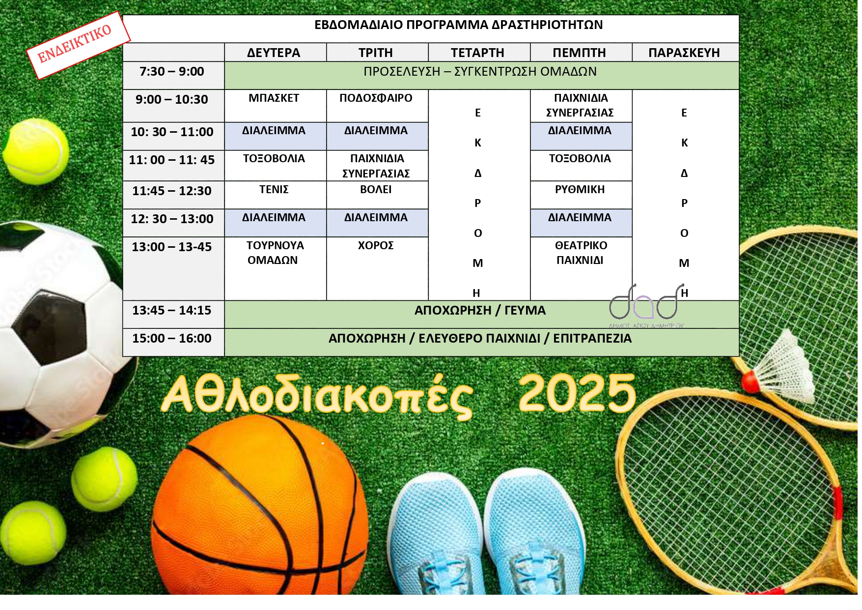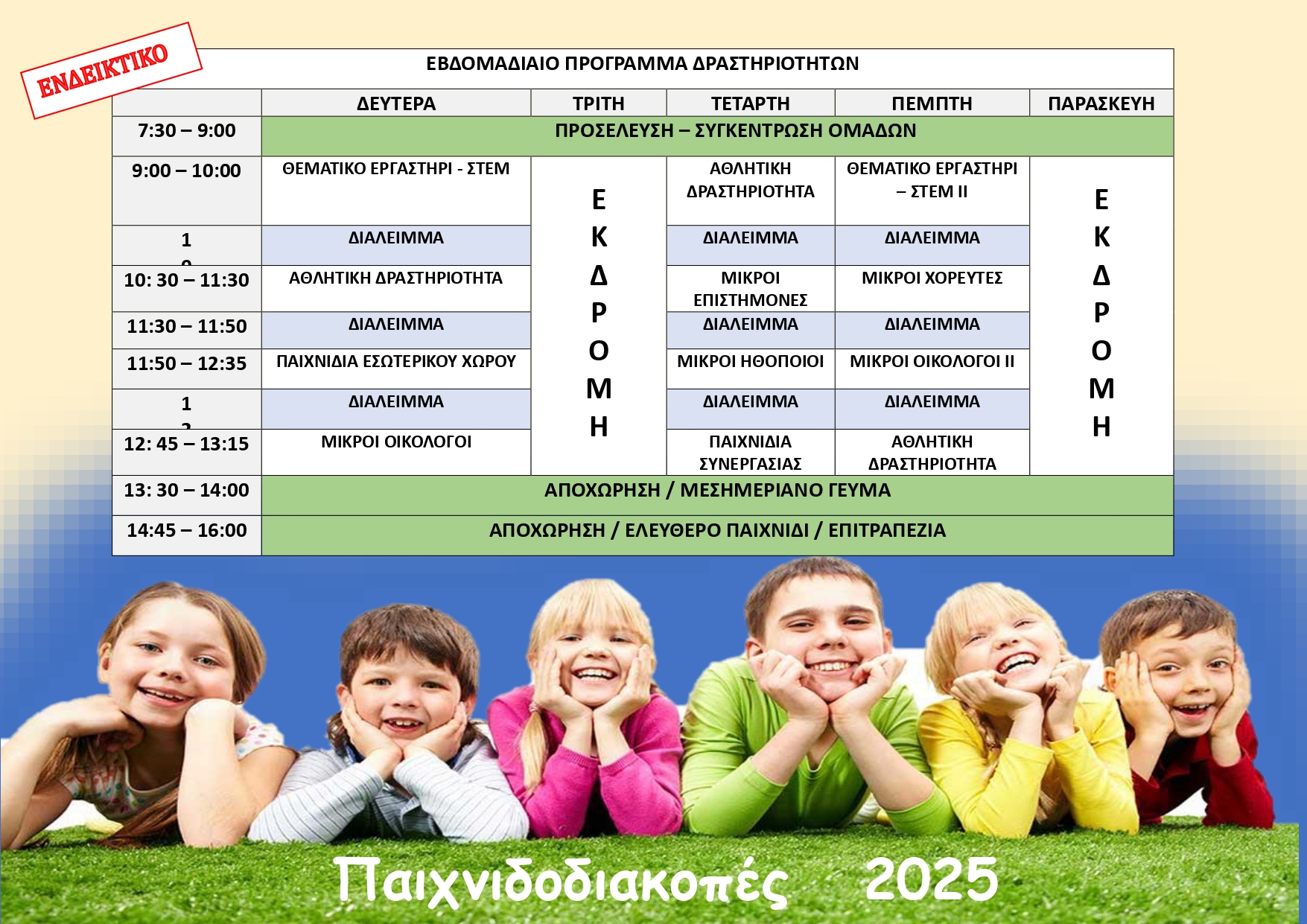 Τα προγράμματα θα πραγματοποιούνται από Δευτέρα έως Παρασκευή και ώρες 7:30 έως 16:00.