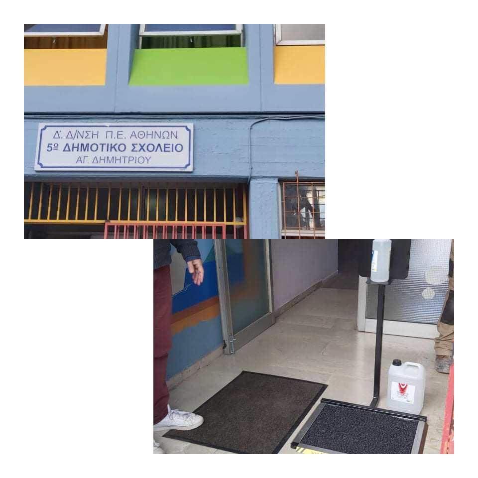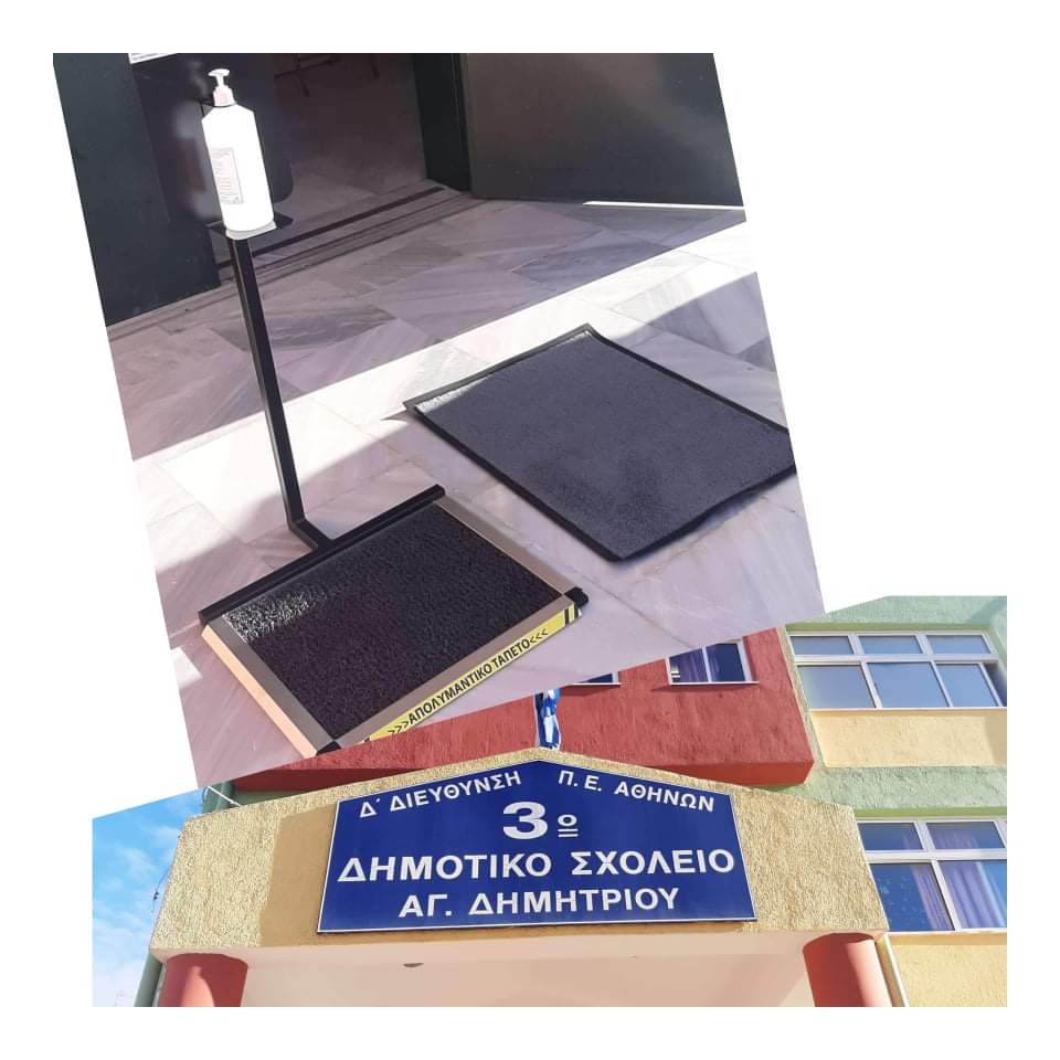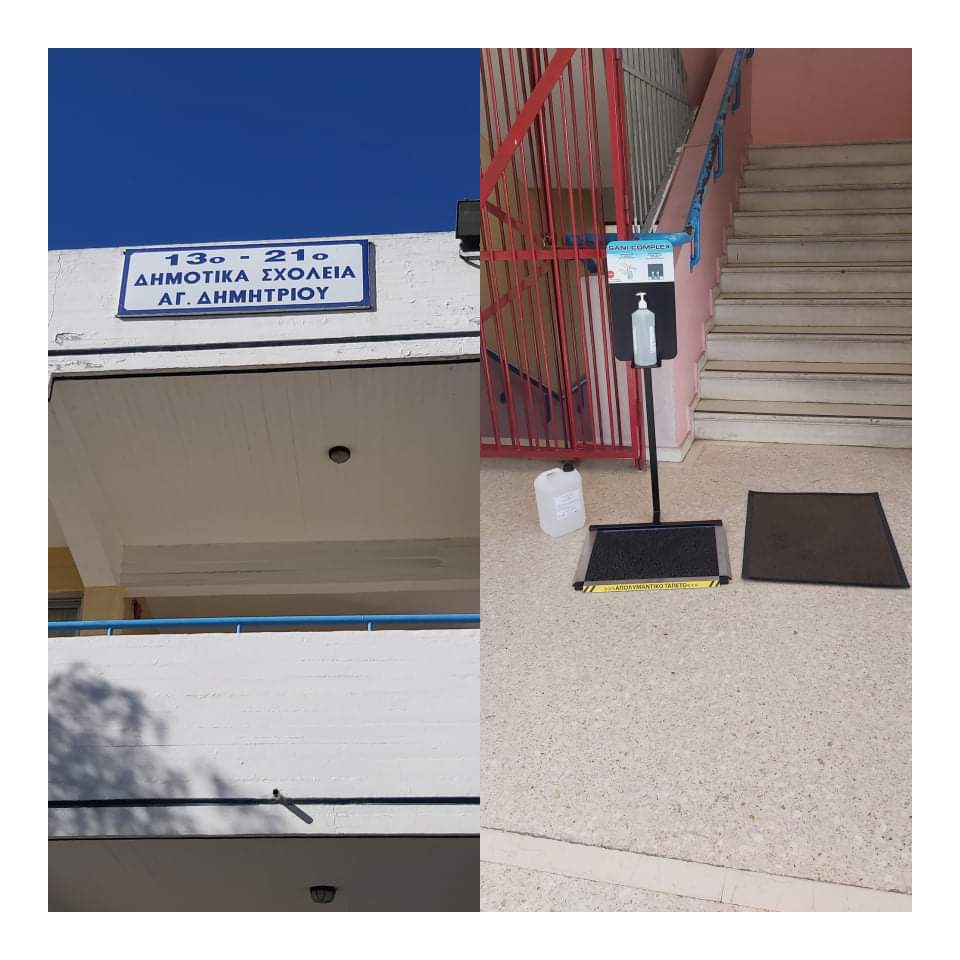 Μετά τα Νηπιαγωγεία, και σε όλα τα Δημοτικά Σχολεία του Δήμου Αγίου Δημητρίου τοποθετήθηκαν ειδικά σταντ παροχής αντισηπτικού για τα χέρια και χαλάκια απολύμανσης των παπουτσιών, στο πλαίσιο των προληπτικών μέτρων για τον περιορισμό της διασποράς του κορωνοϊού.