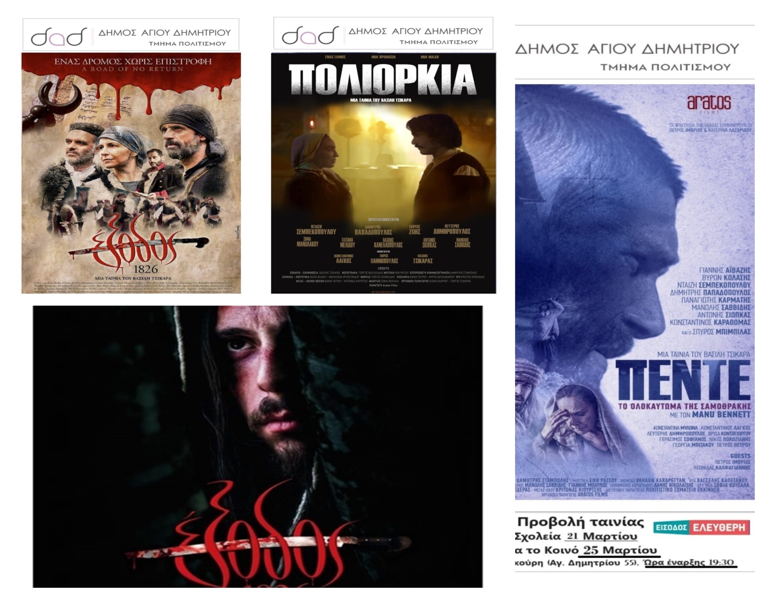 Πρεμιέρα σήμερα για τις προβολές των ταινιών που εξασφάλισε ο Δήμος Αγίου Δημητρίου ενόψει του εορτασμού της 25ης Μαρτίου, της