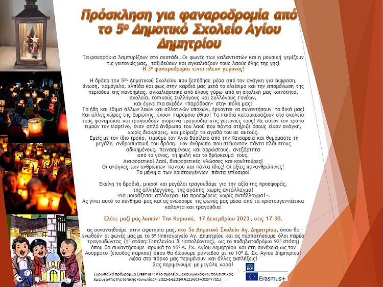 Τα φαναράκια λαμπυρίζουν στο σκοτάδι… Οι φωνές των καλαντιστών και η μουσική γεμίζουν τις γειτονιές μας, ταξιδεύουν και αγκαλιάζουν τους
