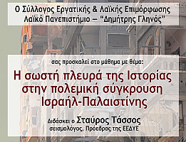 Ο Σύλλογος Εργατικής & Λαϊκής Επιμόρφωσης • Λαϊκό Πανεπιστήμιο "Δημήτρης Γληνός", σας προσκαλεί στο μάθημα με θέμα "Η σωστή πλευρά