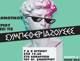 Το ΣΤ1 τμήμα του 5ου Δημοτικού Σχολείου Αγίου Δημητρίου παρουσιάζει τη θεατρική παράσταση "Συμπεθεριάζουσες" σε σενάριο και σκηνοθεσία Τάκη Φλάσκα.