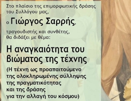 Στο πλαίσιο της επιμορφωτικής δράσης του Συλλόγου Εργατικής & Λαϊκής Επιμόρφωσης, ο Γιώργος Σαρρής, τραγουδιστής και συνθέτης, θα διδάξει με
