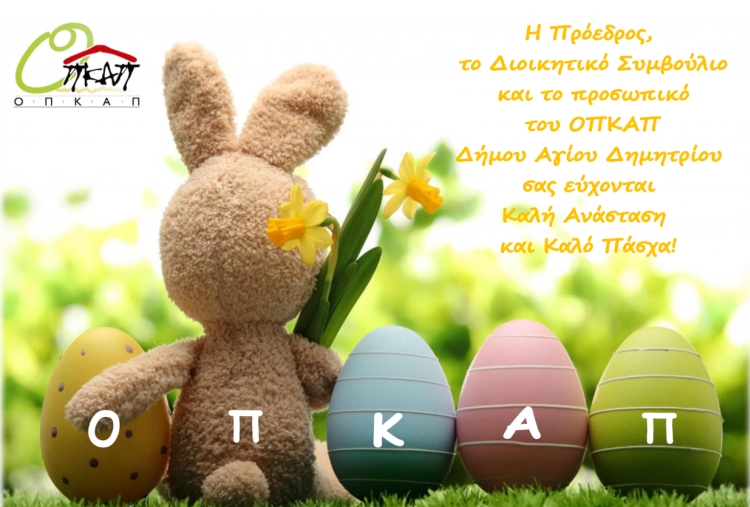 Το Κοινωνικό Φροντιστήριο του Δήμου Αγίου Δημητρίου, σας εύχεται "Καλή Ανάσταση!" με υγεία, πρόοδο και αλληλεγγύη.