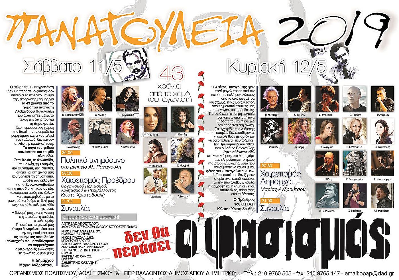 Tα Παναγούλεια καθιερώθηκαν στην πόλη του Αγ. Δημητρίου από τη δεκαετία του 1980 και αποτελούν τη μοναδική στην Ελλάδα θεσμοθετημένη