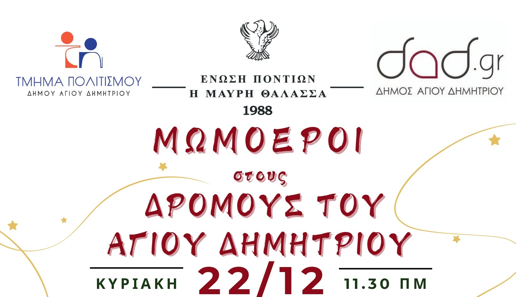 Στο πλαίσιο των εορταστικών εκδηλώσεων "Μια Πόλη - Μια Γιορτή", για τα Χριστούγεννα και την Πρωτοχρονιά, ο Δήμος Αγίου Δημητρίου
