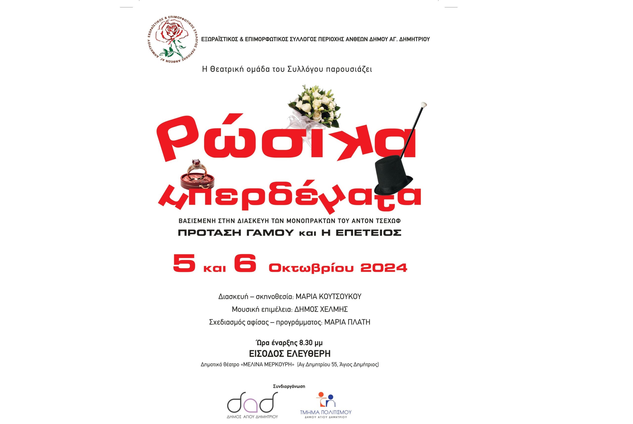 Ο Εξωραϊστικός - Επιμορφωτικός Σύλλογος περιοχής Ανθέων του Δήμου Αγίου Δημητρίου, σε συνεργασία με το Δήμο και το Τμήμα Πολιτισμού,
