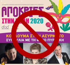 Για καθαρά προληπτικούς λόγους και σύμφωνα με την κεντρική οδηγία του Υπουργείου Υγείας για τη ματαίωση όλων των επίκαιρων αποκριάτικων