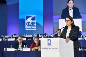 Η Δήμαρχος Μαρία Ανδρούτσου, κατά την τοποθέτησή της στο συνέδριο της ΚΕΔΕ, που πραγματοποιήθηκε στο Βόλο, από τις 21 έως