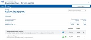 Την Κυριακή 15-10-2023 πραγματοποιήθηκε ο Β΄ κύκλος των αυτοδιοικητικών εκλογών. Το ποσοστό συμμετοχής ήταν 39,01% σε σύνολο 45,653 εγγεγραμμένων στους