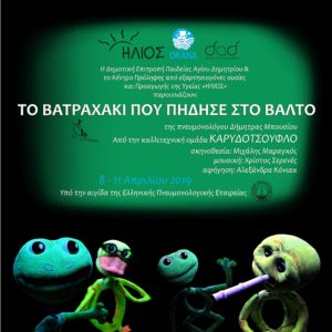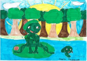 Η παρότρυνση στα παιδιά, να δημιουργήσουν έργα εμπνευσμένα από τη θεατρική παράσταση «Το βατραχάκι που πήδησε στο βάλτο» της Δήμητρας