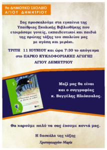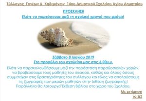 Ο Σύλλογος Γονέων και Κηδεμόνων του 14ου Δημοτικού Σχολείου Αγ. Δημητρίου θα πραγματοποιήσει το Σάββατο, 8 Ιουνίου 2019, ώρα 18:00,