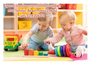 H Διεύθυνση Παιδείας, Κοινωνικής Αλληλεγγύης & Προστασίας ανακοινώνει τους πίνακες εισακτέων και επιλαχόντων παιδιών στους Παιδικούς και Βρεφονηπιακούς Σταθμούς του