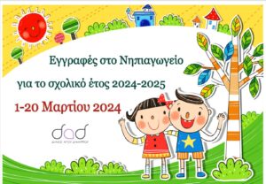 Οι αιτήσεις εγγραφών στα δημόσια νηπιαγωγεία για το σχολικό έτος 2024-2025 ξεκινούν από την Παρασκευή 1 Μαρτίου μέχρι και την