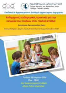 Την Τετάρτη 20 Μαρτίου 2024 στον 4ο Βρεφονηπιακό σταθμό ( Τηλεμάχου 39) στις 16:00 η Διεύθυνση Παιδείας του Δήμου Αγίου