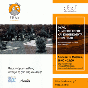 ► Μια διαφορετική εκδήλωση στο πλαίσιο των εκδηλώσεων του Δήμου Αγίου Δημητρίου και της Δημοτικής Επιτροπής Ισότητας για τα έμφυλα