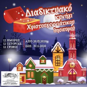 Ξεκίνησε στις 20-12-2020 το "Διαδικτυακό κυνήγι του χριστουγεννιάτικου θησαυρού", που διοργανώνει ο Οργανισμός Πολιτισμού Αθλητισμού και Περιβάλλοντος και απευθύνεται σε