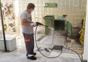 Σε πλύσιμο και απολύμανση όλων των κάδων απορριμμάτων του Δημοτικού Κοιμητηρίου, προέβησαν την Τετάρτη 28-7-2021 οι εργαζόμενοι, με την υπάρχουσα,