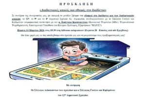 Την Τρίτη 04 Μαρτίου 2025 και ώρα έναρξης στις 17:30 θα πραγματοποιηθεί ομιλία και συζήτηση με γονείς και