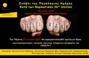 Την Πέμπτη 27 Ιουνίου 2024 και ώρες 19:15 - 20:45 θα πραγματοποιηθεί ομιλία με θέμα: «Αυτοτραυματισμοί, τατουάζ, piercing: σύγχρονες δυσφορίες
