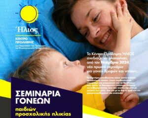 Νέος Κύκλος Σεμιναρίων Γονέων με παιδιά στην προσχολική ηλικία του Κέντρου Πρόληψης Εξαρτήσεων ''ΗΛΙΟΣ'' αρχίζει την Τρίτη 05 Νοεμβρίου 2024