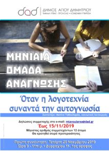 ΔΗΜΟΣ ΑΓΙΟΥ ΔΗΜΗΤΡΙΟΥ ΤΜΗΜΑ ΥΓΕΙΑΣ ΠΡΟΝΟΙΑΣ ΚΟΙΝΩΝΙΚΗ ΥΠΗΡΕΣΙΑ Μηνιαία Ομάδα Ανάγνωσης Όταν η λογοτεχνία συναντά την αυτογνωσία Τι σχέση έχει