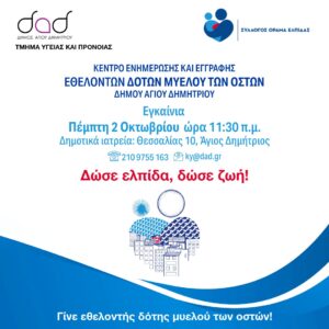 Δήμος Αγίου Δημητρίου - Τμήμα Υγείας & Πρόνοιας & Εθνικό και Καποδιστριακό Πανεπιστήμιο Αθηνών Α’ Ω.Ρ.Λ Παν/κή Κλινική Γ.Ν.Α