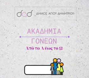 Το Κέντρο Κοινότητας του Δήμου Αγίου Δημητρίου σας προσκαλεί να παρακολουθήσετε τον 10ο κύκλο των Ακαδημιών Γονέων «Από το Α