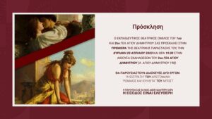 Ο Εκπαιδευτικός Θεατρικός Όμιλος του 1ου και 2ου ΓΕΛ Αγίου Δημητρίου, σας προσκαλεί στην πρεμιέρα της θεατρικής του παράστασης, την