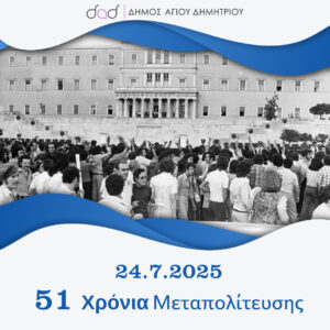 Η 24η Ιουλίου αποτελεί για την πατρίδα μας ημέρα μνήμης και τιμής. Είναι η Ημέρα αποκατάστασης της Δημοκρατίας, μια ημέρα που σηματοδοτεί
