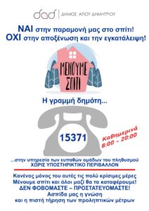 Ναι στην παραμονή μας στο σπίτι! Όχι στην αποξένωση και την εγκατάλειψη! Η γραμμή δημότη 15371 στην υπηρεσία των ευπαθών ομάδων