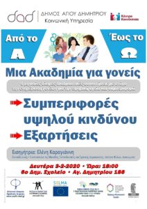 Στο πλαίσιο της λειτουργίας της Ακαδημίας Γονέων, από την Κοινωνική Υπηρεσία του Δήμου, η Ελένη Καραγιάννη, Εκπαιδευτικός, Συντονίστρια της Μονάδας
