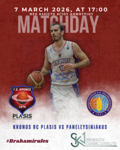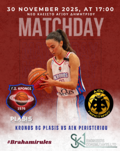 Κυριακή 30/11 | 17:00 | Kronos BC PLASIS ΑΕΚ Περιστερίου Nέο Κλειστό Αγ. Δημητρίου Μετά το σημαντικό κι άνετο διπλό στην