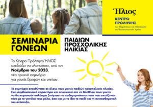 Νέα Σεμινάρια Γονέων Παιδιών Προσχολικής Ηλικίας από το Κέντρο Πρόληψης Εξαρτήσεων ΗΛΙΟΣ Δήμων Αγίου Δημητρίου και Νέας Σμύρνης, ξεκινούν την