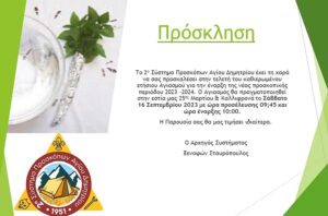 Τα μέλη των Προσκόπων Άγιου Δημητρίου, σας προσκαλούν στην τελετή του καθιερωμένου ετήσιου Αγιασμού για την έναρξη της νέας προσκοπικής