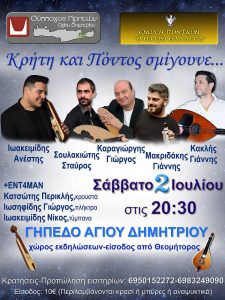 Ο Σύλλογος Ανθέων Αγίου Δημητρίου, σας προσκαλεί, την Παρασκευή 24 Ιουνίου 2022 και ώρα 20:00, στην πλατεία Παναγούλη, στην εκδήλωση