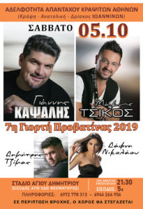 Η Αδελφότητα των Απανταχού Κραψιτών Αθηνών, σας προσκαλεί στην 7η Γιορτή Προβατίνας, το Σάββατο 5-10-2019 και ώρα 21:30 στο Δημοτικό