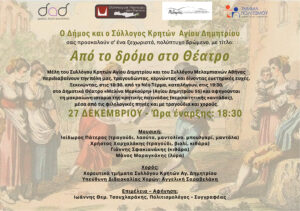 Ο Δήμος Αγίου Δημητρίου και ο Σύλλογος Κρητών της πόλης μας διοργανώνουν, στις 27 Δεκεμβρίου, ένα ξεχωριστό, πολύπτυχο δρώμενο με