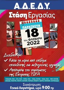 ΑΠΟΦΑΣΗ της Εκτελεστικής Επιτροπής της Α.Δ.Ε.Δ.Υ. Στάση Εργασίας και Συγκέντρωση στο Γενικό Λογιστήριο του Κράτους ΠΑΡΑΣΚΕΥΗ, 18 ΦΕΒΡΟΥΑΡΙΟΥ 2022, ώρα 9:00
