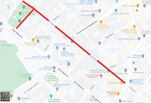 ► Λόγω καθίζησης που προκλήθηκε από βλάβη του αγωγού της ΕΥΔΑΠ στην οδό Σουλίου, στο ύψος του αρ. 74, διακόπτεται