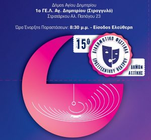 Το Θεατρικό Εργαστήρι του Δήμου Αγίου Δημητρίου συμμετείχε στους 35ους Πανελλήνιους Θεατρικούς Αγώνες Ερασιτεχνικών Θιάσων του Δήμου Ζωγράφου με την