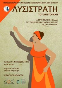 Η ΛΥΣΙΣΤΡΑΤΗ ΤΟΥ ΑΡΙΣΤΟΦΑΝΗ ΑΠΟ ΤΗ ΘΕΑΤΡΙΚΗ ΟΜΑΔΑ «ΤΟ ΤΡΙΤΟ ΚΟΥΔΟΥΝΙ» ΣΤΙΣ 6 ΝΟΕΜΒΡΙΟΥ ΣΤΟ ΔΗΜΟΤΙΚΟ ΘΕΑΤΡΟ ΜΕΛΙΝΑ ΜΕΡΚΟΥΡΗ Ο