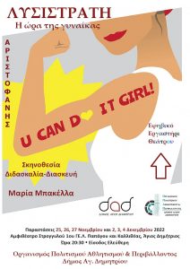 Το Εφηβικό Εργαστήρι Θεάτρου Αγίου Δημητρίου επιστρέφει δυναμικά παρουσιάζοντας την «Λυσιστράτη» του Αριστοφάνη σε σκηνοθεσία – διασκευή - διδασκαλία Μαρίας