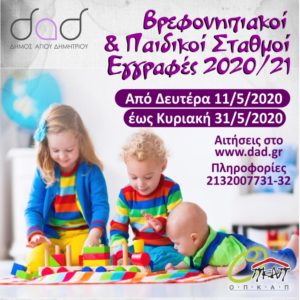 Αγαπητοί γονείς, Από τη Δευτέρα 11/5/2020 έως και την Κυριακή 31/5/2020, ώρα 24:00 θα γίνονται δεκτές οι αιτήσεις εγγραφών στους