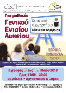 Για 4η συνεχή χρονιά, θα λειτουργήσουν και φέτος στο Κοινωνικό Φροντιστήριο (Κ.Φ.Α.Δ.) της πόλης μας θερινά τμήματα προετοιμασίας μαθητών Γ’