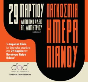Την Κυριακή 7 Απριλίου 2024, στις 18:00 μ.μ., στο Δημοτικό Θέατρο Μελίνα Μερκούρη μαθητές από την Α’ – Δ’ Δημοτικού,