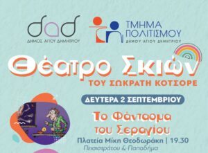 Δευτέρα 2 Σεπτεμβρίου: Θέατρο Σκιών του Σωκράτη Κοτσορέ: "Το φάντασμα του Σεραγίου" στις 19:30 στην Πλατεία Μίκη Θεοδωράκη (Πεισιστράτου &