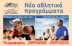 Δύο νέα προγράμματα που απευθύνονται σε νέους, νέες και ενήλικες ετοιμάζεται να εντάξει στον αθλητικό του σχεδιασμό ο Οργανισμός Πολιτισμού,